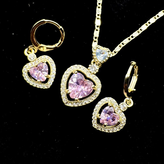 Set Premium Corazón De Amor De Cadena y Aritos