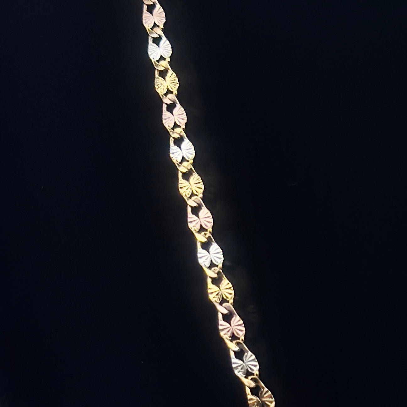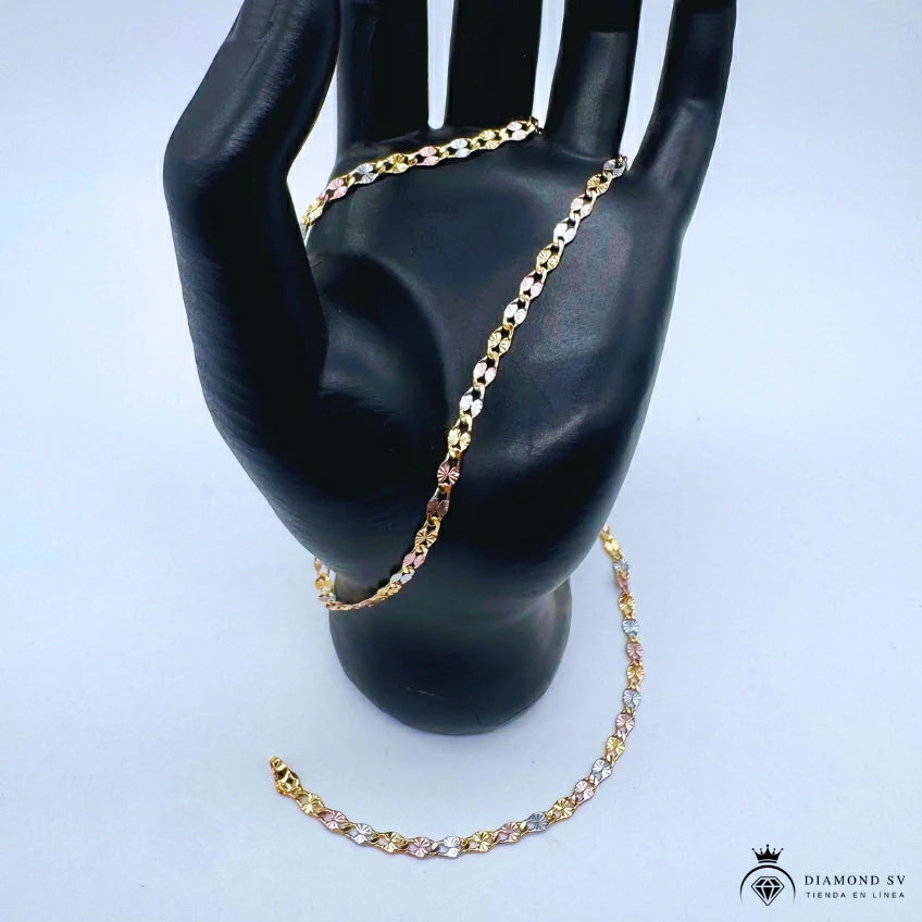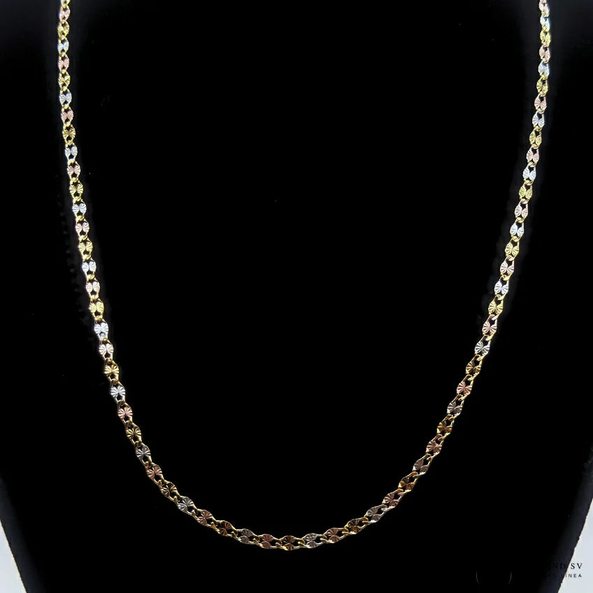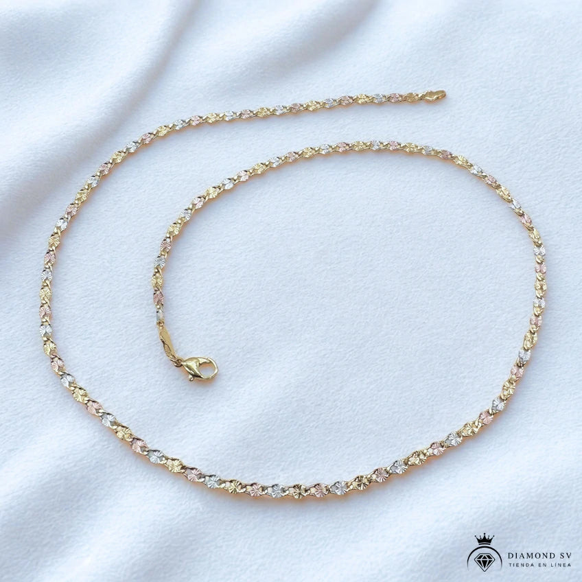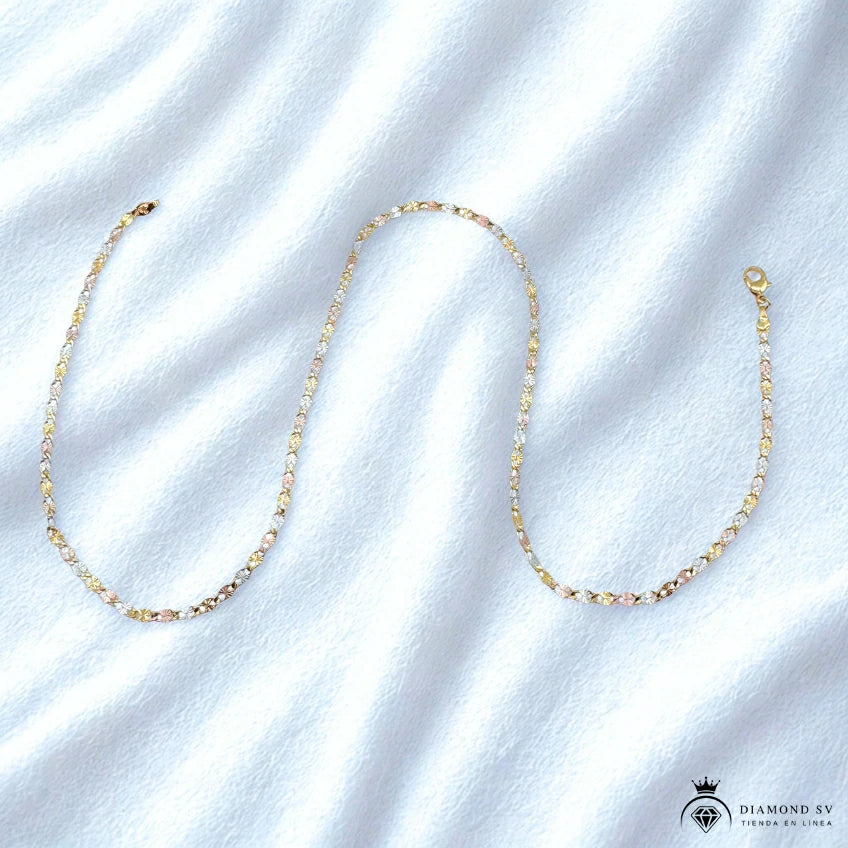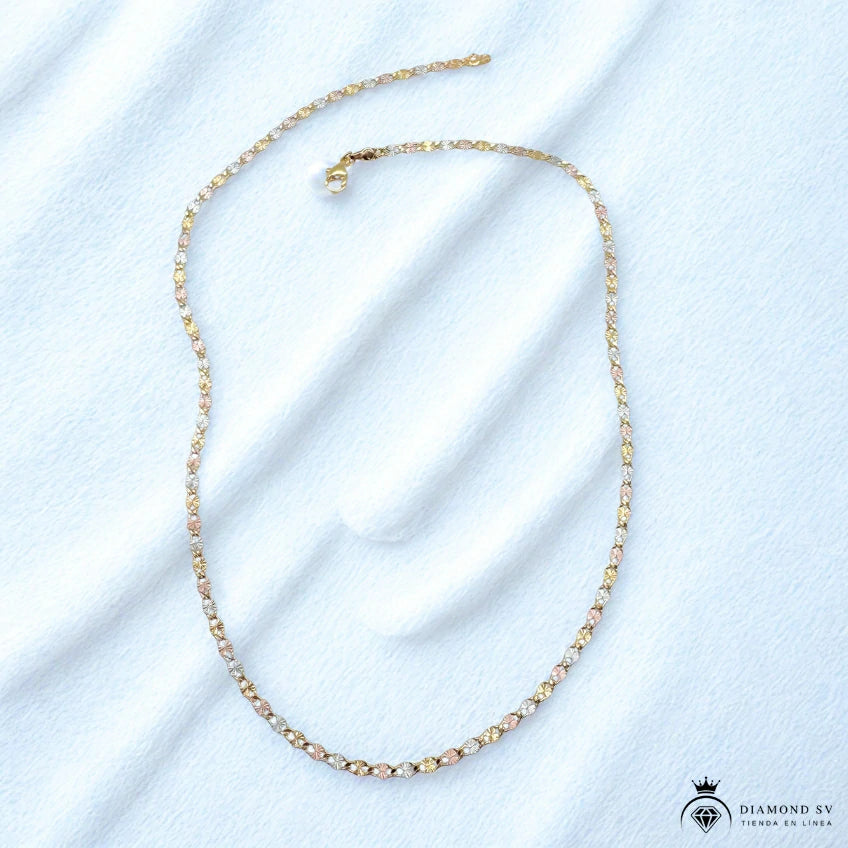 💎 Experimenta el lujo y regala elegancia con nuestra hermosa cadena de Enchape De Oro de 18 Kilates en 3 tonos. Esta joya está diseñada para lucir hermosa en cualquier ocasión.